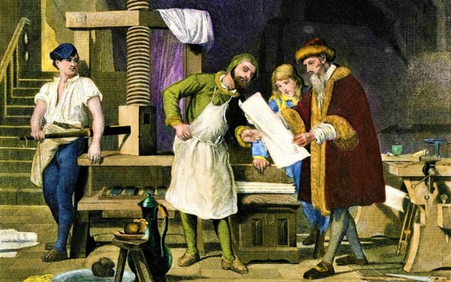 Alman Johannes Gutenberg ve 1455’de kurduğu matbaa