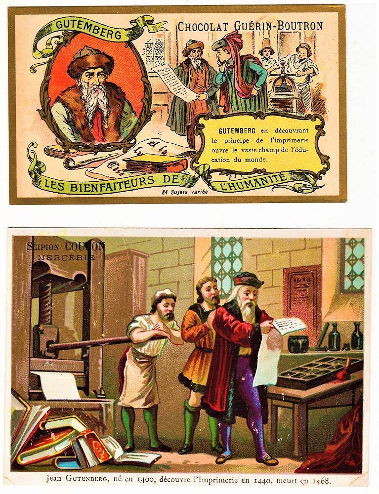 Gutenberg ve matbaasıyla ilgili Avrupa kaynaklarında yer alan bir tasvir.