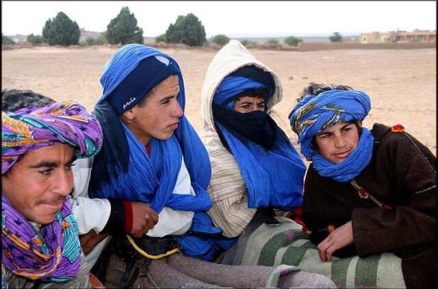 Tuareglerin kadın-erkek ilişkilerindeki belki de en ilginç husus erkeklerin örtünmesi. Diğer Müslüman topluluklarda kadınları peçe takmış görürken Tuaregler’de erkekler peçe takıyor. Peçe takan Tuareg erkekleri “Sahra’nın Mavi Adamları” olarak biliniyor ve peçe takmalarının sebebini de “Kadınlar güzeldir, onların yüzlerini görmek isteriz” diye açıklıyorlar.
