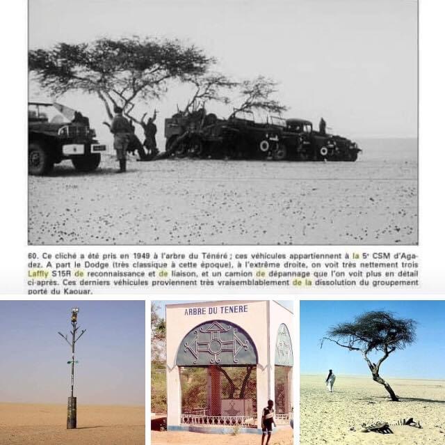 Fransız etyolojist ve kaşif Henri Lhote bu izole ağacı ilk kez 1934’de, çölün Gadoufaoua gibi, Nigersaurus gibi dinozor kemiklerinin bulunduğu bölgenin yakınlarında, Djanet ve Agadez arasındaki ilk otomobil seferi için Tenere’ye gittiğinde görmüştü.