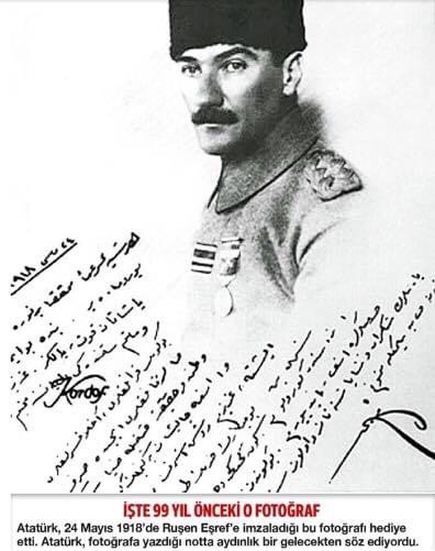 Ruşen Eşref’in, 24 Mart 1918 tarihli bu röportajından tam 2 ay sonra, 24 Mayıs 1918’de, Atatürk, Ruşen Eşref Bey’e bir imzalı fotoğrafını hediye edecektir.