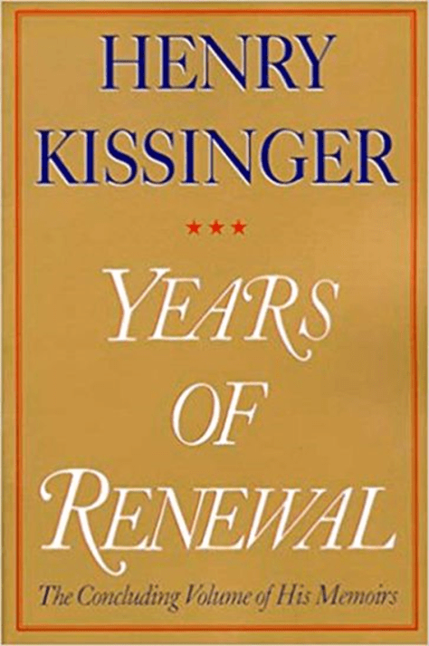 Kissinger’ın anılarının “Years of Renewal”, yani “Yenilenme Yılları” isimli son cildi 1999’da çıktı ve 1150 sayfalık kitap Amerika’da bir anda listebaşı oldu. Amerikalılar Vietnam Savaşı sırasındaki gizli temasları, 1970’lerde yaşanan petrol ambargosunun perde arkasını, Latin Amerika’daki bilinmeyen pazarlıkları, Angola’yı kan gölüne çeviren iç savaşın ardında olup bitenleri ve daha birçok hadiseyi birinci elden, yani Kissinger’dan öğrendiler.
