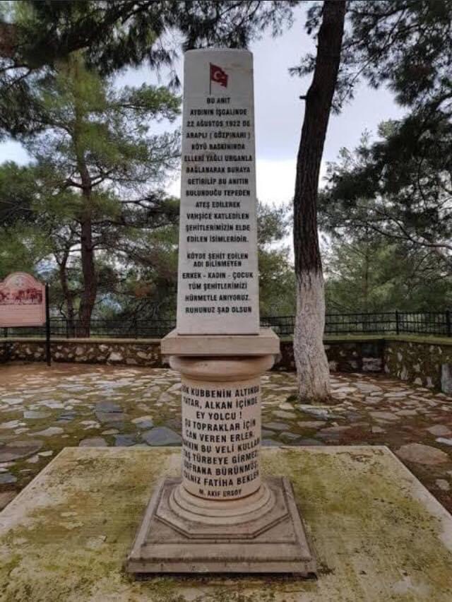 Kurtuluş Savaşımız bitip Araplı köylüsü özgürlüğüne kavuştuğunda köyün nüfusu 100’den azdır. Aydın Efeler ilçesi Gözpınar Şehitliği Abidesi Yunan’ın 22 Ağustos 1922’de gerçekleştirdiği katliamın şahidi olarak dimdik ayaktadır ve Dünyaya 20. yy başında Yunan’ın Anadolu topraklarında Türk milletine yaşattığı acıları haykırmaktadır.