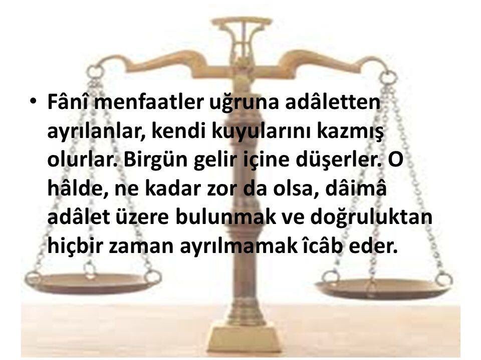 Dünyada güzel işler yapmak istiyorsanız aranızda adaleti yayın. O zaman toplum güzel bir hale gelecektir.