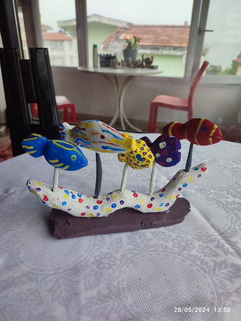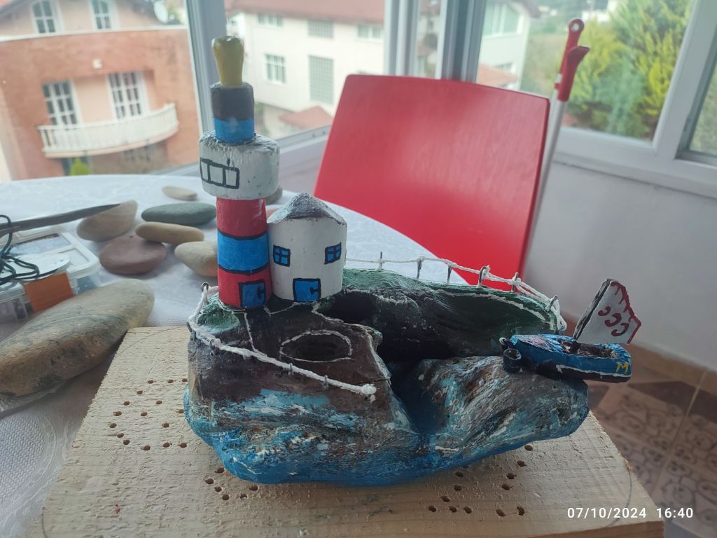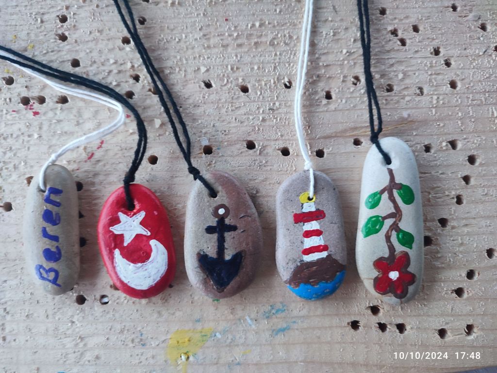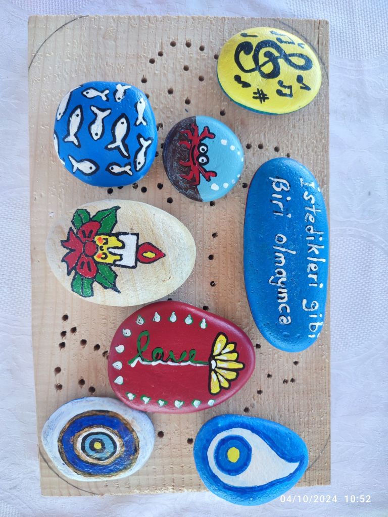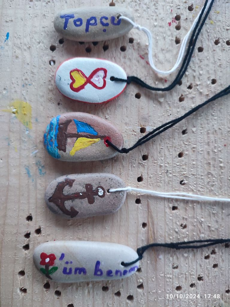 Sahilden topladığım atık malzeme ve taşlardan bu güzel şeyler çıktı ortaya, yaptıkça uğraştıkça insan kendisini geliştiriyormuş onu öğrendim.