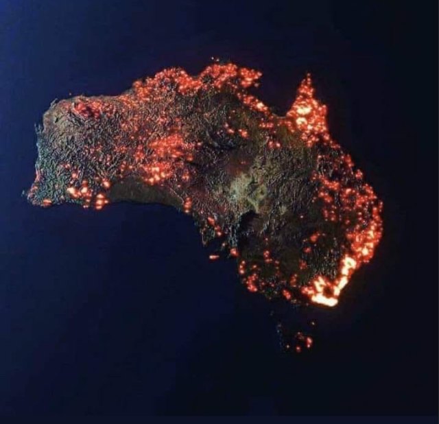 Kıtamızda kara kış yaşarken, Dünyanın başka bölgeleri Yaz mevsimini yaşıyor, işte Avustralya da Yazın en sıcak günlerini yaşayan küçük kıta ülkesi, düşünün Ülkedeki orman yangınları günlerdir devam ediyor ve nerede ise kıtanın tamamı yangınlarla boğuşuyor, ne kadar korkunç acı bir durum. Felaketin Dini,Irkı olmaz, bir ağaç, bir hayvan yıllar içinde büyüyor yetişiyor,Allah yardımcıları olsun.
